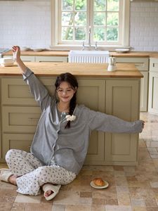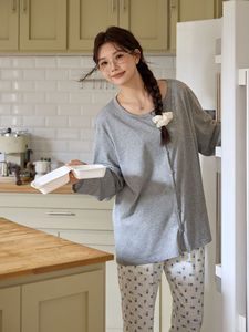 大码女装早秋舒适时髦家居服女长袖上衣小碎花长裤可遛弯睡衣套装