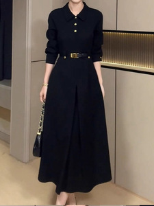 2025年大码秋季新款复古赫本风收腰设计气质长袖A字高级感连衣裙