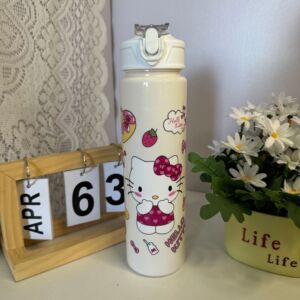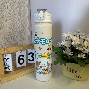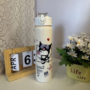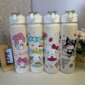 批发三丽鸥800ml标准米白色中杯带提绳吸管耐摔耐高温弹跳盖水杯