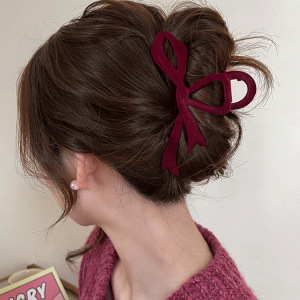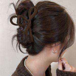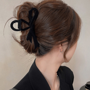 高级感飘带美拉德丝绒抓夹秋冬发夹女新款后脑勺鲨鱼夹子头饰