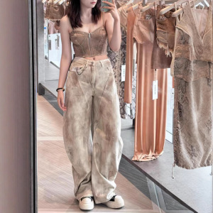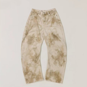 SK狂野大陆弯刀牛仔裤(手工)垂感做旧设计感阔腿裤