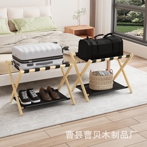 木质行李架酒店客栈装饰两层置地式展示收纳架鞋架可折叠行李架