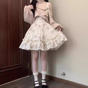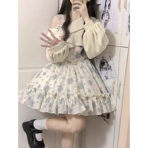 2025新款学院风碎花连衣裙秋冬季吊带裙甜美露肩蓬蓬蛋糕裙少女潮