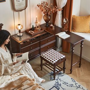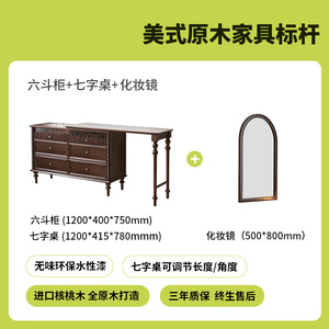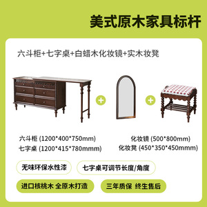 法式复古实木家用化妆柜梳妆台花瓣六斗柜可旋转角全实木收纳