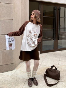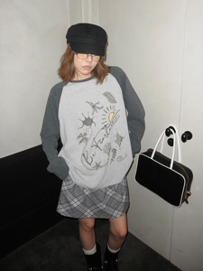 UNITY MODE 卡通拼接印花长袖T恤女秋季撞色设计感小众上衣251153