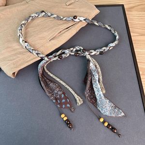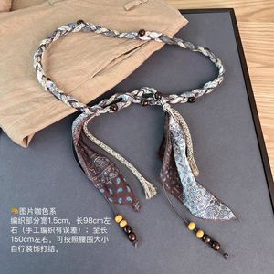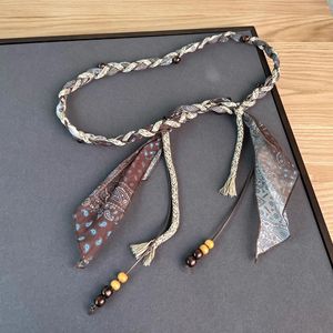 2025秋波西米亚风丝巾蜡绳编织腰链细腰带搭配拖地裤半裙串珠腰绳