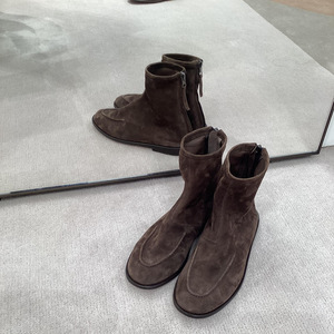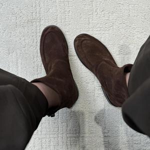 小众极简英伦风圆头平底短靴25秋冬新款真皮麂皮绒瘦瘦靴切尔西靴