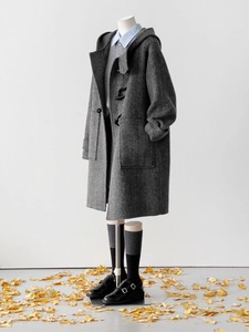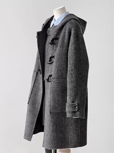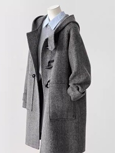 2025新款秋冬季中长款小个子毛呢外套灰色羊毛法式名媛牛角扣大衣