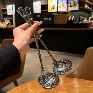 加厚高颜值家用不锈钢漏勺汤勺厨房大勺盛汤勺子加深汤匙长柄火锅