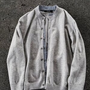 花灰色假两件开衫针织毛衣男款秋季感拼接格子外套轻熟风上衣其他