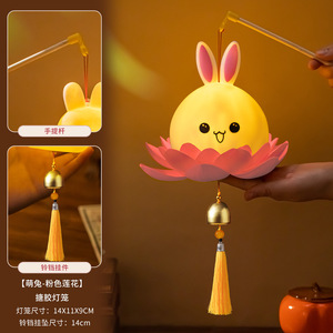 2025新款中秋节儿童手提灯笼diy手工材料小兔子花灯古风发光宫灯