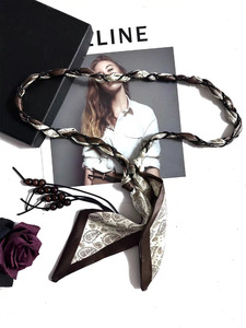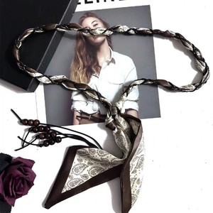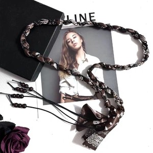 丝巾串木珠辫子腰带女款简约百搭拼色腰绳配裙民族风编织皮带装饰