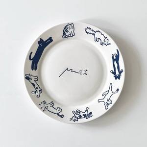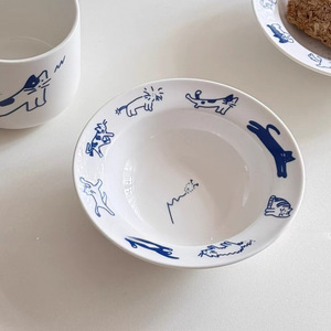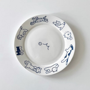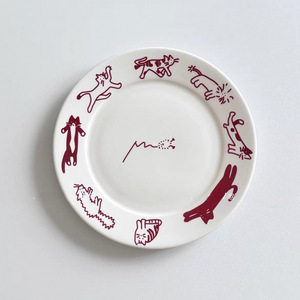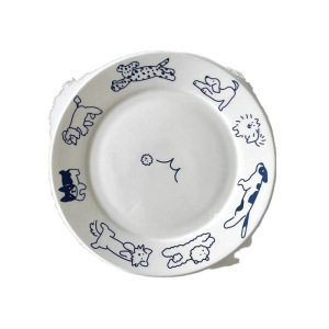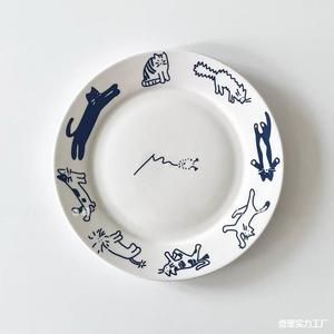 出口韩国复古可爱线描小狗猫猫陶瓷盘寸甜品早餐盘小众餐具