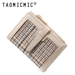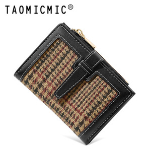 跨境复古短款女士钱包精致PU两折大容量多卡位证件零钱卡包批发