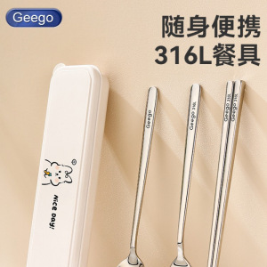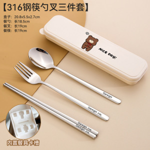 筷子勺子套装儿童便携餐具收纳盒卡通小学生三件套外出