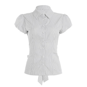 C3023TP欧美跨境夏季条纹排扣衬衫辣妹收腰显瘦绑带设计翻领短袖