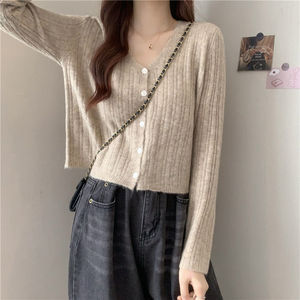 春秋2025年新款薄款针织开衫女装宽松短款长袖上衣爆款小外套毛衣