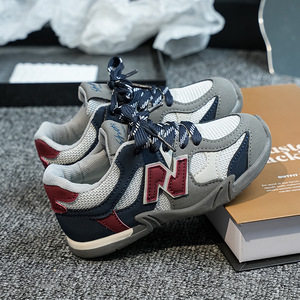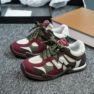 2025春夏新款韩版德训鞋儿童撞色运动鞋时尚防滑软底透气跑步鞋潮