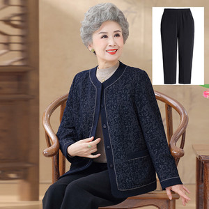 奶奶秋装新款外套老年人洋气衣服女妈妈装圆领小香风开衫大码上衣