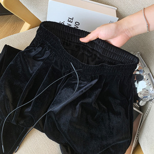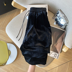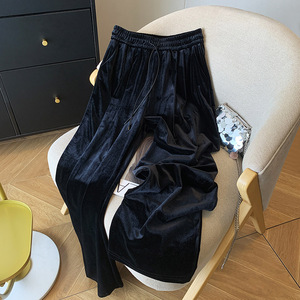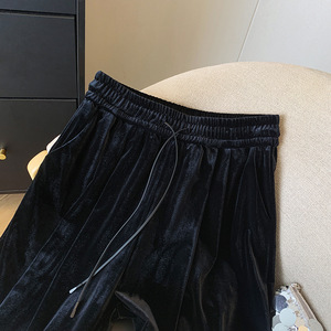 黑色金丝绒阔腿裤女春秋季2025新款高腰垂坠感休闲显瘦拖地直筒裤