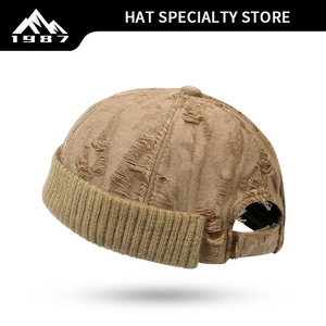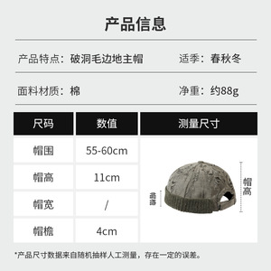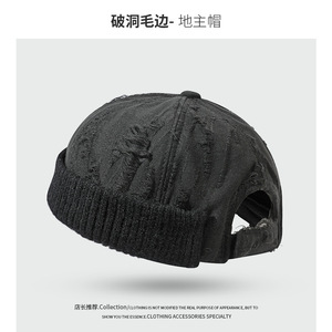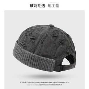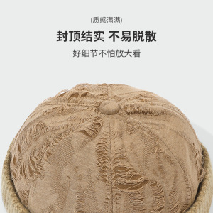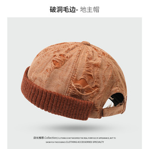 春秋新款废土风软顶破洞磨毛地主帽雅痞瓜皮帽无檐复古街头包头帽