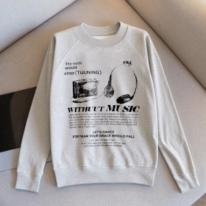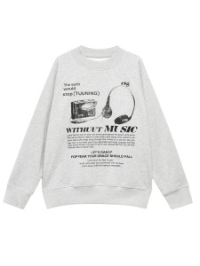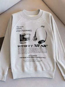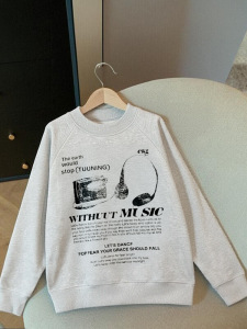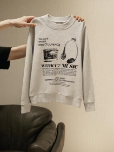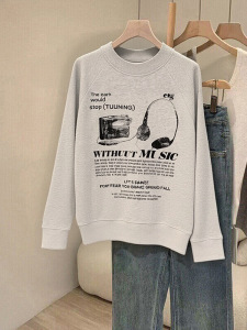 美式灰色无帽套头正肩卫衣女春秋款oversize宽松潮牌薄款长袖上衣