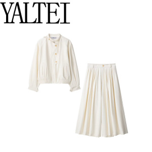 YALTEI跨境速卖通ins欧美外贸 女装 法式时尚纽扣外套打褶裤套装