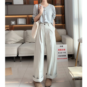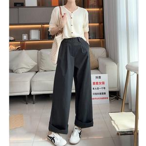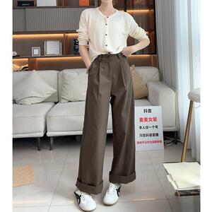2025 新款立体剪裁休闲裤女士时尚直通阔腿裤子女雅灰茶白其它