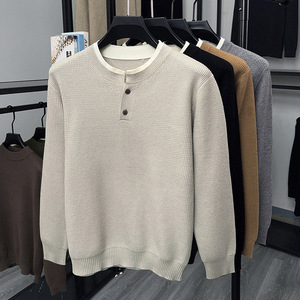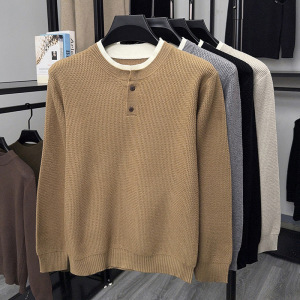 男士假两件圆领毛衣2025秋冬新款青年宽松加厚内搭保暖打底针织衫