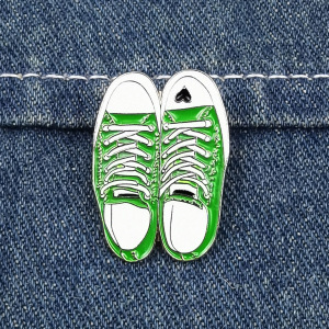 卡通绿色帆布鞋金属徽章创意黑色爱心配饰徽章小众设计服饰领针