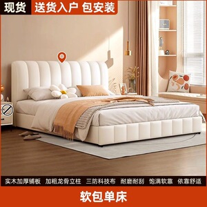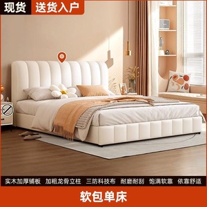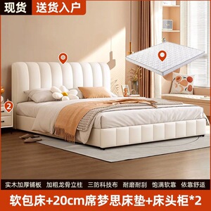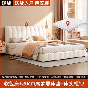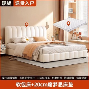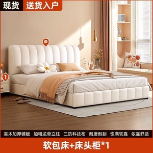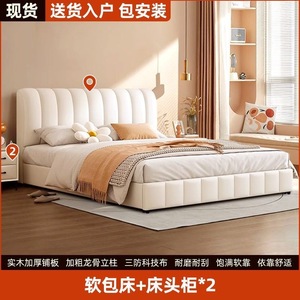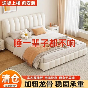 网红软包轻奢婚床实木床双人1.8x2米主卧大床1.5家用科技布奶油风