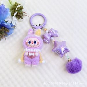 新款植绒国王拉布布蝴蝶结毛球可爱学生书包挂饰潮玩小挂件批发