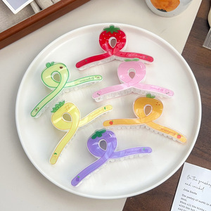 新款果冻色一字抓夹女韩版小清新水果鲨鱼夹后脑勺盘发夹子发抓