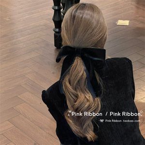 法式秋冬新款芭蕾风丝绒黑白蝴蝶结后脑勺温柔发夹少女发饰头饰