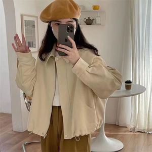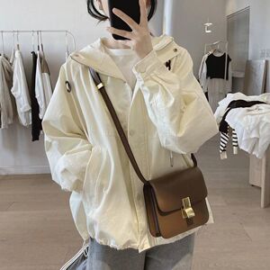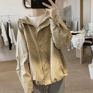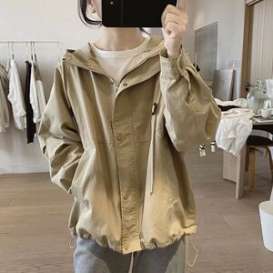 连帽工装外套女式春秋新款宽松复古显瘦连帽简约款插肩袖上衣外套