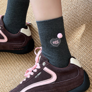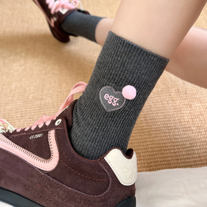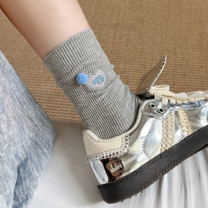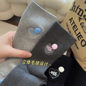 超好看的袜叽!韩国东大门刺绣字母爱心球球棉袜子女中筒百搭洋气
