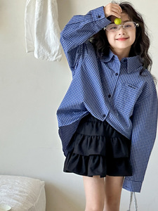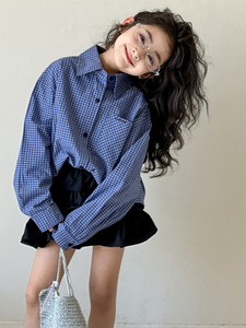 小红鱼女童衬衫秋装2025新款韩版亲子装儿童格子衬衣秋季洋气上衣