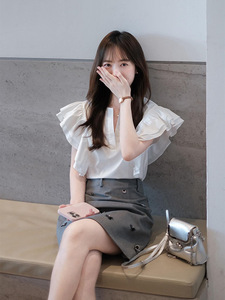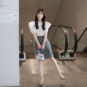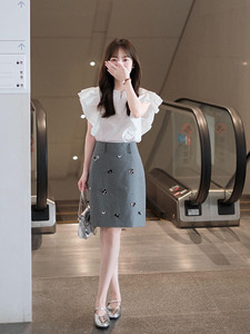 2025巨好看的夏装一整套小香风小众不撞款小飞袖衬衫裙子两件套装