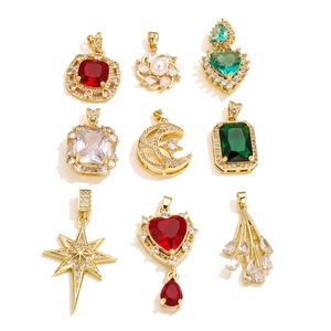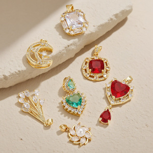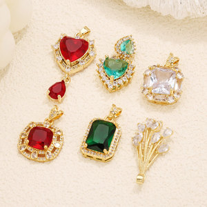 跨境高级感 铜质彩色锆石吊坠 水滴爱心造型 DIY 手链项链配饰