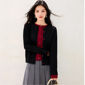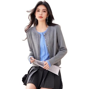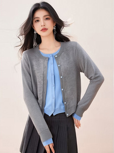 灰色假两件毛衣长袖针织开衫女春秋款小个子修身短款毛衣外套秋冬