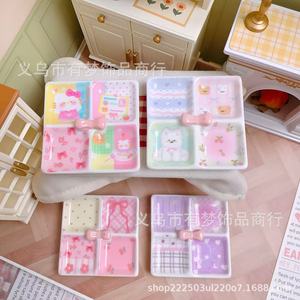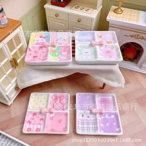 仿真微缩分格餐盘子diy材料奶油胶树脂饰品配件材料捏捏装饰盘子