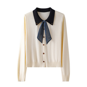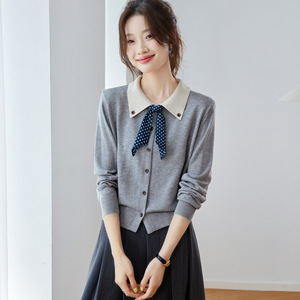 娃娃领蝴蝶结针织衫女2025春秋冬新款宽松洋气减龄毛衣打底衫上衣