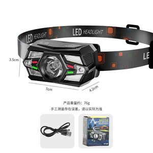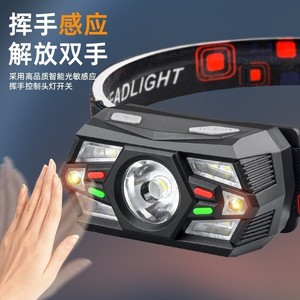 跨境智能感应小头灯多功能多光源充电户外头戴式手电筒夜钓灯批发