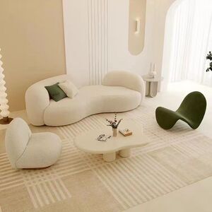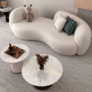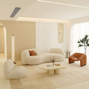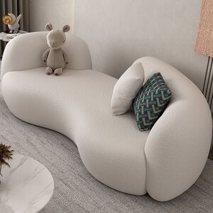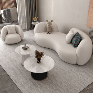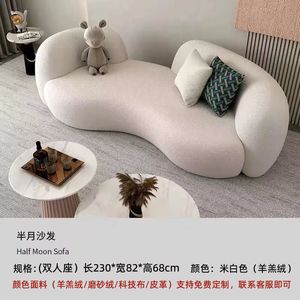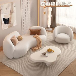 北欧布艺沙发客厅小户型弧形接待网红款美容院异形简约羊羔绒双人