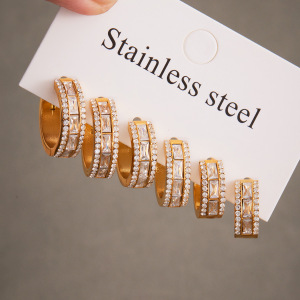 梦幻欧美爆款双侧镶嵌5A锆石钛钢圆形耳环女士个性复古设计感耳饰