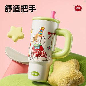 bociya水杯保温杯女大容量冰霸杯新款把手车载保冷带茶隔吸管杯子
