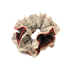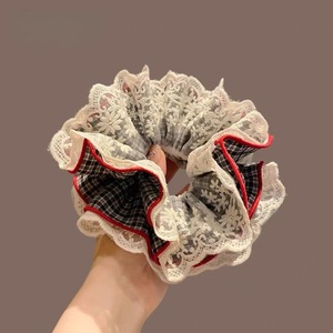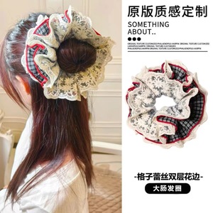 优雅格子蕾丝多层花边大肠发圈女气质清新头花扎发丸子头发绳头饰