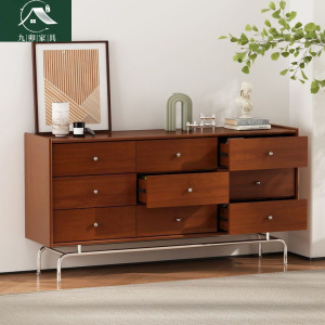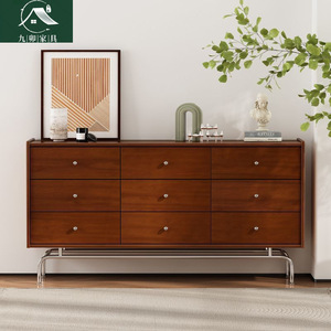 美式中古风实木九斗柜小户型现代收纳复古抽屉一体柜客厅储物边柜