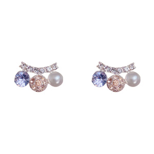 珍珠镶钻球球微笑耳钉(加厚真金电镀)