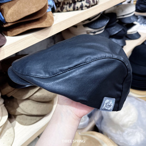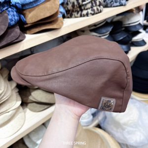 批发韩国2025年秋冬新款PU皮前进帽英伦复古美式反戴贝雷帽大头围